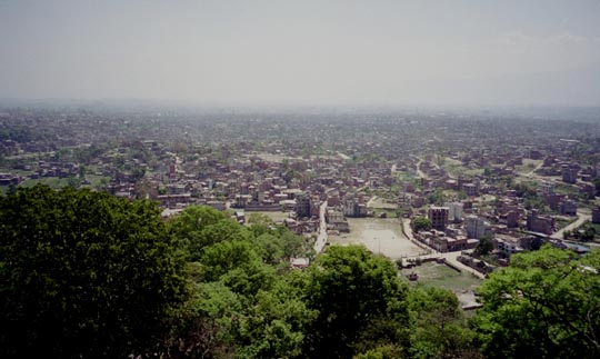 広大なカトマンドゥ盆地 これが、ネパールの首都があるカトマンドゥ盆地です。広大な大地になっています。何もしらないでカトマンドゥにおりたつと、ネパールの急峻なヒマラヤ山脈を感じることができません。どのような自然史があって、このような平地がヒマラヤ山脈の中に形成されたのでしょうか。 ここには、地質時代には湖がありました。旧石器時代から人がすんでいたともいわれています。15〜18世紀には都市国家が形成され繁栄しました。