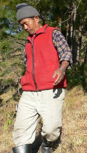 アウロ村では、苗畑管理人のチャンドラ=バハドゥール=プンさんが私たちを出むかえてくれる。