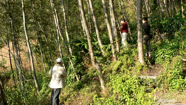私たち調査チームはアウロ村の共有林の調査をはじめる。これまでに植林された樹種はおもにウッティス(ネパールハンノキ)とアメリカ松である。森林はたしかに回復しており、薪や飼料・材木などのために利用されている。