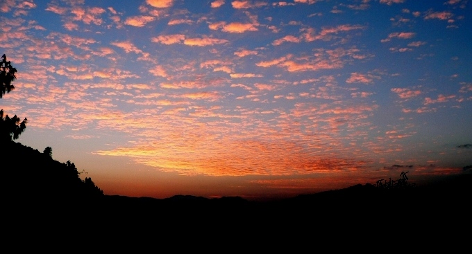 ふりかえると、うつくしい夕焼けがひろがっている。